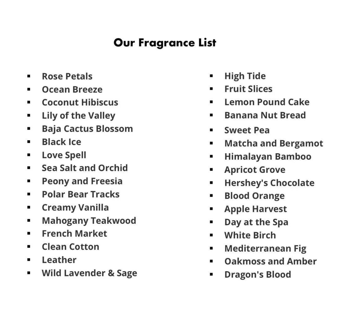 If you don’t see a color / scent you like in the drop down menu, please see pictures for our color palette and fragrance list.